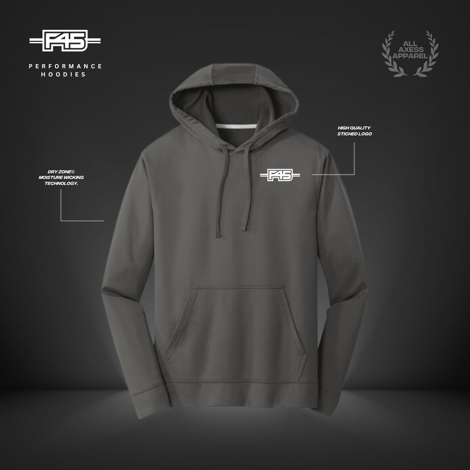 Get moving with our Unisex F45 Performance Fleece Pullover Hooded Sweatshirt, featuring revolutionary Dry Zone® moisture-wicking technology. Made with 100% polyester, this sweatshirt boasts a 5.9-ounce weight for optimal performance. It also includes a removable tag for added comfort and relabeling, a taped neck for durability, and a front pouch pocket for convenience. Complete with a 3-panel hood and dyed-to-match drawcords, plus self-fabric cuffs and hem, this sweatshirt is perfect for staying active and looking great. And to top it off, it features a high quality embroidered logo that will make you stand out from the crowd.